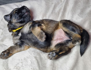 Aska, partagera sa vie avec une jeune humaine avec qui elle ira faire des études, elle aura en compagnie de temps en temps une Cavalier King-Charles et une autre louloutte avec qui les parties de jeux devraient être animées. Mzlle Jaune, c'est celle qui ressemble le plus à sa maman, une certaine sensibilité, prend le temps de découvrir et c'est parti, elle est patiente et apprend vite, elle adore les papouilles, c'est aussi une sacrée gourmande.