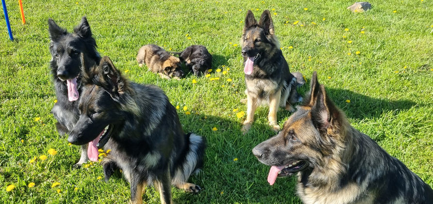 Le reste de la meute s'adapte très bien, Mustang passe faire un coucou furtif à ses nièces tous les jours ; dès que maman a le dos tourné Vyper elle va leur faire des bisous et les appelle avec un petit gémissement, trop mignonne.