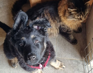 1ère sortie en voiture pour les mâles, "oulàlà, ça nous a fichue la trouille cet engin", heureusement c'était juste pour aller chez les voisins. Nous étions attendu par Treck, un berger Tervuren et le minet Réglisse.
